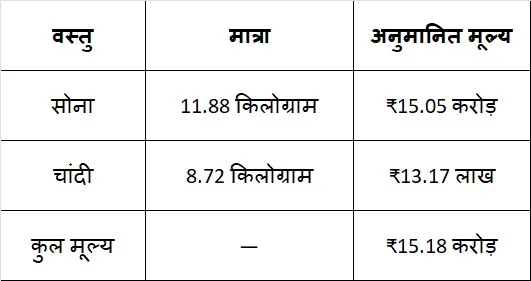 रिपोर्ट: Rohtas Darshan चुनाव डेस्क | मुंबई | Updated: 12 नवंबर 2025: मुंबई में डायरेक्टरेट ऑफ रेवेन्यू इंटेलिजेंस (DRI) ने एक बड़ी कार्रवाई करते हुए ‘ऑपरेशन बुलियन ब्लेज’ के तहत सोना तस्करी करने वाले एक अंतरराज्यीय गिरोह का भंडाफोड़ किया है। कार्रवाई के दौरान 11.88 किलो सोना और 8.72 किलो चांदी जब्त की गई, जिसकी कुल कीमत करीब ₹15.18 करोड़ रुपए बताई जा रही है। डीआरआई ने इस मामले में 11 लोगों को गिरफ्तार किया है, जिनमें इस पूरे तस्करी नेटवर्क का मास्टरमाइंड भी शामिल है।