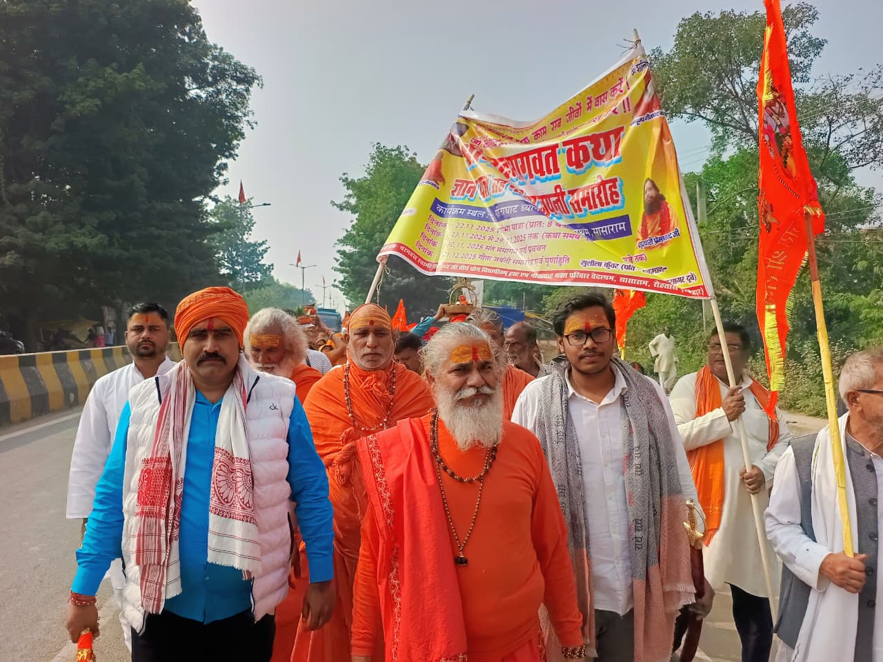 रिपोर्ट: Rohtas Darshan चुनाव डेस्क | सासाराम | Updated: 22 नवंबर 2025: प्रत्येक वर्ष की भांति इस वर्ष भी गीता घाट आश्रम सासाराम एवं इसके अध्यक्ष श्री महंत स्वामी कमलानंद जी महाराज के नेतृत्व में श्रीमद् भागवत कथा एवं गीता जयंती के पावन अवसर पर दिव्य एवं भव्य शोभा यात्रा का भव्य आयोजन किया गया। परंपरागत आध्यात्मिक उत्साह और भक्तिमय वातावरण में आयोजित इस शोभायात्रा ने पूरे नगर में श्रद्धा और उत्सव का अभूतपूर्व वातावरण निर्मित कर दिया।