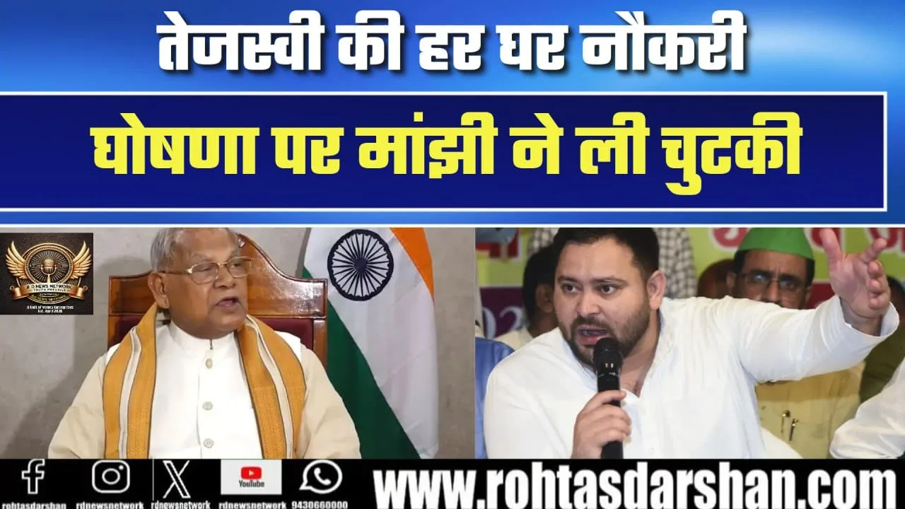 Bihar की राजनीति में फिर छिड़ी जुबानी जंग! Tejashwi Yadav की “हर घर नौकरी” घोषणा पर Jitan Ram Manjhi ने कसा तंज – कहा, अब तो चांद और मंगल पर भी फार्महाउस देने की तैयारी है क्या? #tejashwiyadav #jitanrammanjhi #biharpolitics #politicalsatire #biharnews #indianpolitics #TejashwiPromise #ManjhiStatement #viralpolitics #newsupdate #politicaldebate #breakingnews