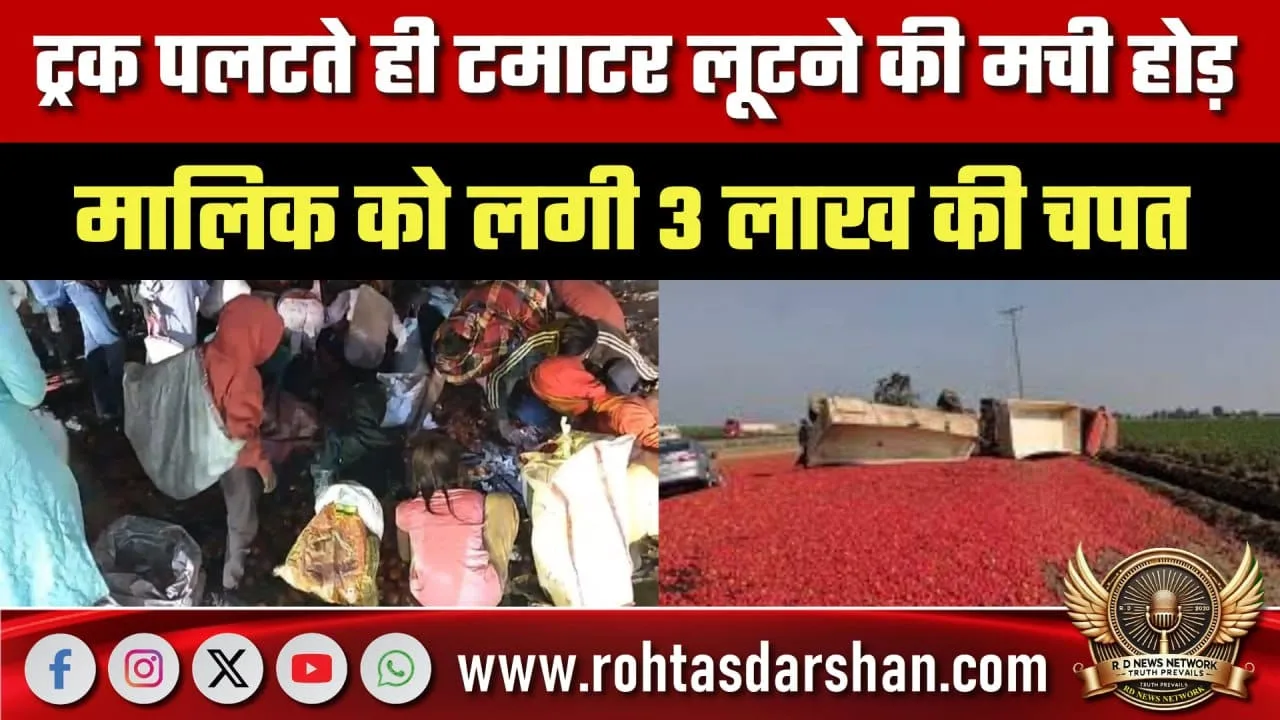 ट्रक पलटते ही टमाटर लूटने की होड़! भीड़ ने कर दिया लाखों का नुकसान