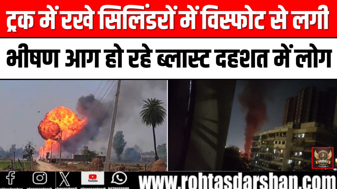 ट्रक में रखे सिलिंडरों में विस्फोट से लगी भीषण आग
