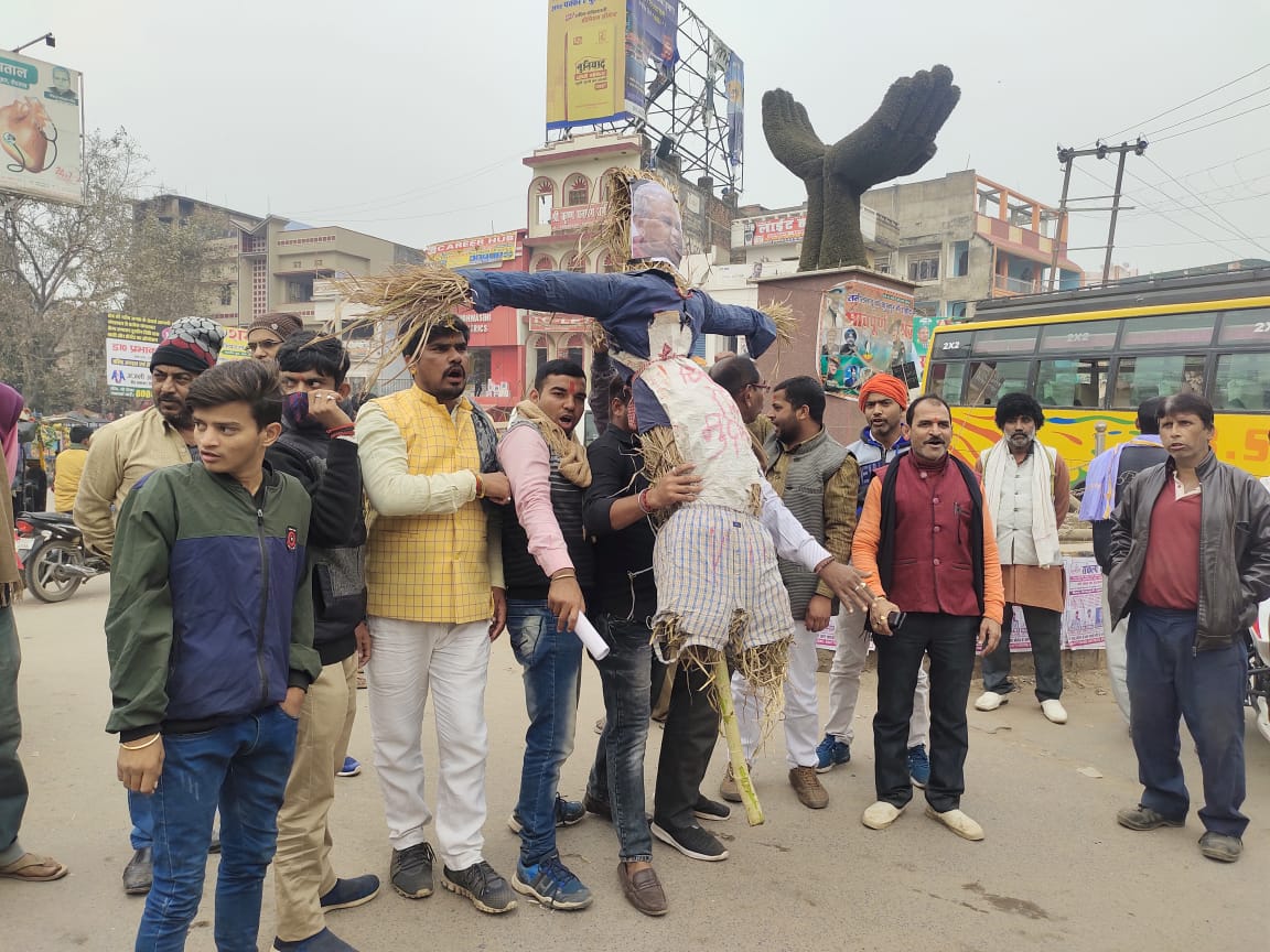 आर० डी० न्यूज़ नेटवर्क : 28 दिसंबर 2021 : बिक्रमगंज(रोहतास) : मंगलवार को स्थानीय शहर के तेंदुनी चौक पर ब्राम्हण समाज ने एकजुटता का परिचय देते हुए पूर्व मुख्यमंत्री जीतन राम मांझी का पुतला दहन किया । हिंदू क्रांति संघ के प्रदेश उपाध्यक्ष डॉ रजनीकांत पांडेय ने कहा कि हिन्दू को तोड़ने की योजना चलाया जा रही है । जो एकदिन घातक साबित होगा । हम जोड़ने वाले हैं तोड़ने वाले नहीं है । जो तोड़ने वाले होते हैं उनका विरोद्ध होता रहेगा जैसे मांझी एक के बिना दूसरे का काम चल नहीं सकता । हमारा सम्बन्ध अटूट है जो टूटने वाला नहीं है , चाहे मांझी जो कुछ भी डांक वाला बोली बोले । यह बात पुतला दहन के बाद सम्बोधन में कहा कि हम लम्बा लकीर में विश्वास करते है । छोटे भैया नेता छोटा लकीर में विश्वास करते है । जो हिन भावना से दूर रहे ओ हिन्दू है ये नेता हिन भावना से ग्रसित है । मौके पर बड़क बाबा,मंगल पांडेय,राकेश मिश्रा,मृत्युंजय तिवारी,नितीश पाण्डेय,हरेंद्र मिश्र,उज्वल मिश्र,अंशु बाबा,विद्यापति तिवारी,भोला मिश्र,विशाल पाण्डेय सहित सैकड़ों की संख्या में ब्राम्हण समाज के लोग उपस्थित थे ।