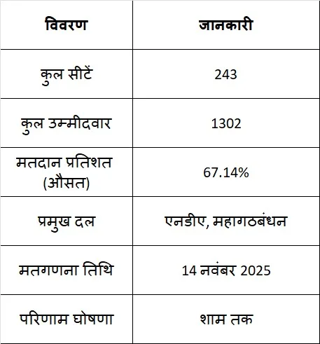 बिहार विधानसभा चुनाव 2025 — प्रमुख तथ्य