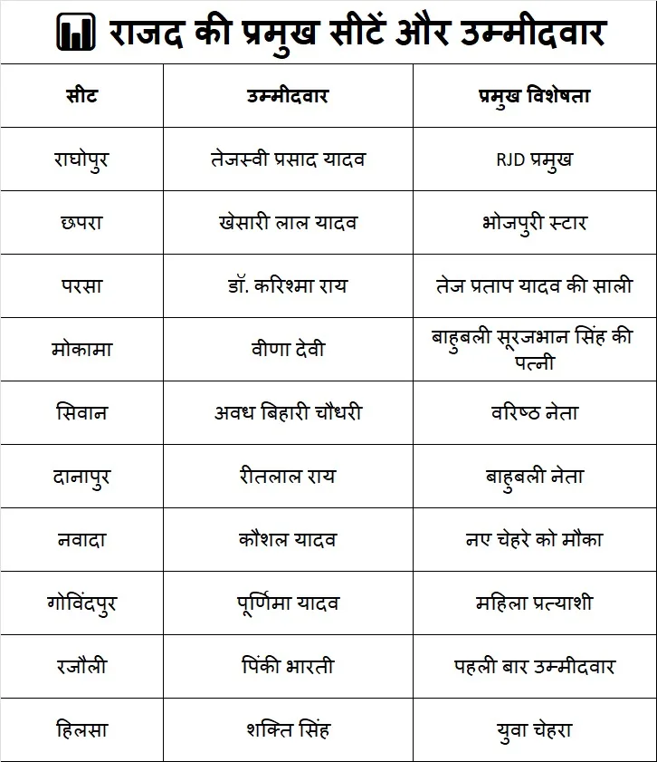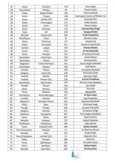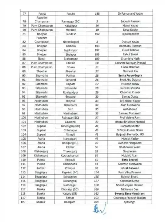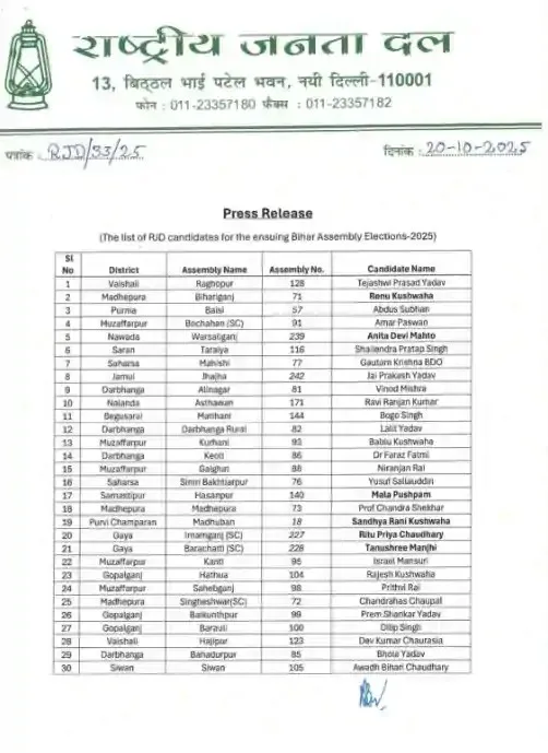 राजद के इस लिस्ट में कई पुराने और नए चेहरे शामिल किए गए हैं। पार्टी ने इस बार अनुभव, युवा जोश, सामाजिक समीकरण और स्टार पावर का संतुलन साधने की कोशिश की है।