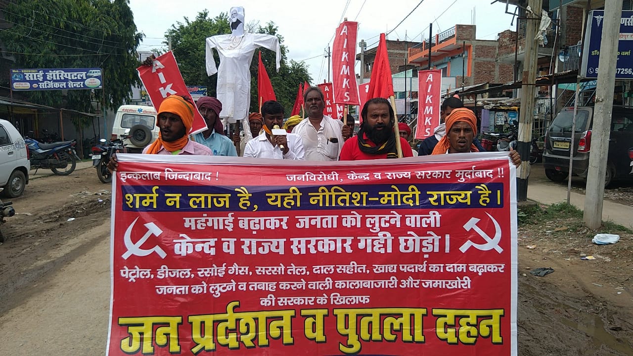 केंद्र और राज्य सरकार लगातार जन विरोधी कानून बनाकर , लोकतंत्र को समाप्त कर अफसरशाही बढ़ा रही है। संवैधानिक व जनवादी अधिकार को समाप्त कर रही है, नीतीश और मोदी सरकार न्यूनतम सरकार ,अधिकतम शासन तंत्र स्थापित कर रही है। अब चुनी हुई सरकार से ही देश और जनता लूटी जा रही है। तंग व तबाह हो रही है। अपना वेतन सुविधा पेंशन बढ़ा रही है , पढ़े-लिखे नौंजवानों को बेरोजगार बना रही है। शिक्षा चिकित्सा जैसे अनिवार्य जनहित कार्य क्षेत्रों को प्राइवेट कर के नागरिकों का अधिकार छीन लिया है। इस देश में समाजवादी व्यवस्था लाना जरूरी है। इस कार्यक्रम को संबोधित करते हुए भाकपा (माले ) नेता जिला सचिव कामरेड अशोक बैठा ने सारी बातें को कहा। इस कार्यक्रम में नेतृत्व में शामिल हुए ,भगत सिंह छात्र नौजवान सभा के नेता मनीष कुमार रजक, राजेश कुमार साह उर्फ राजू ,राहुल दुसाद ,रंजन बैठा, धर्मेंद्र बैठा, कमला देवी ,मिनती देवी, डॉक्टर राधेश्याम चंद्रवंशी, गोरख बैठा, एकादशी राम, अरविंद राम, विजय पासवान, बैजनाथ राम मेश्राम ,रामायण बैठा, बबुआ माझी, लल्लन माझी,भदई माझी, महिंद्र माझी ,सुभाष माझा। सैकड़ों लोग उपस्थित थे।