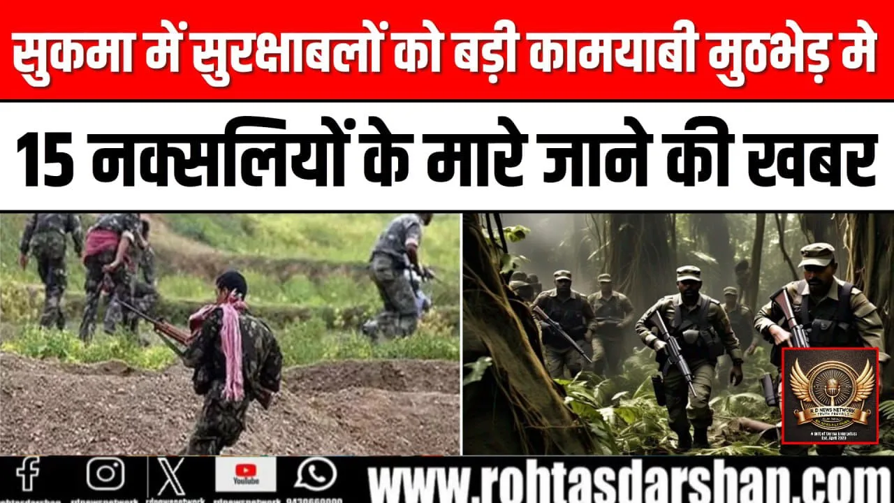 सुकमा में सुरक्षाबलों को बड़ी कामयाबी मुठभेड़ में 15 नक्सलियों के मारे जाने की खबर