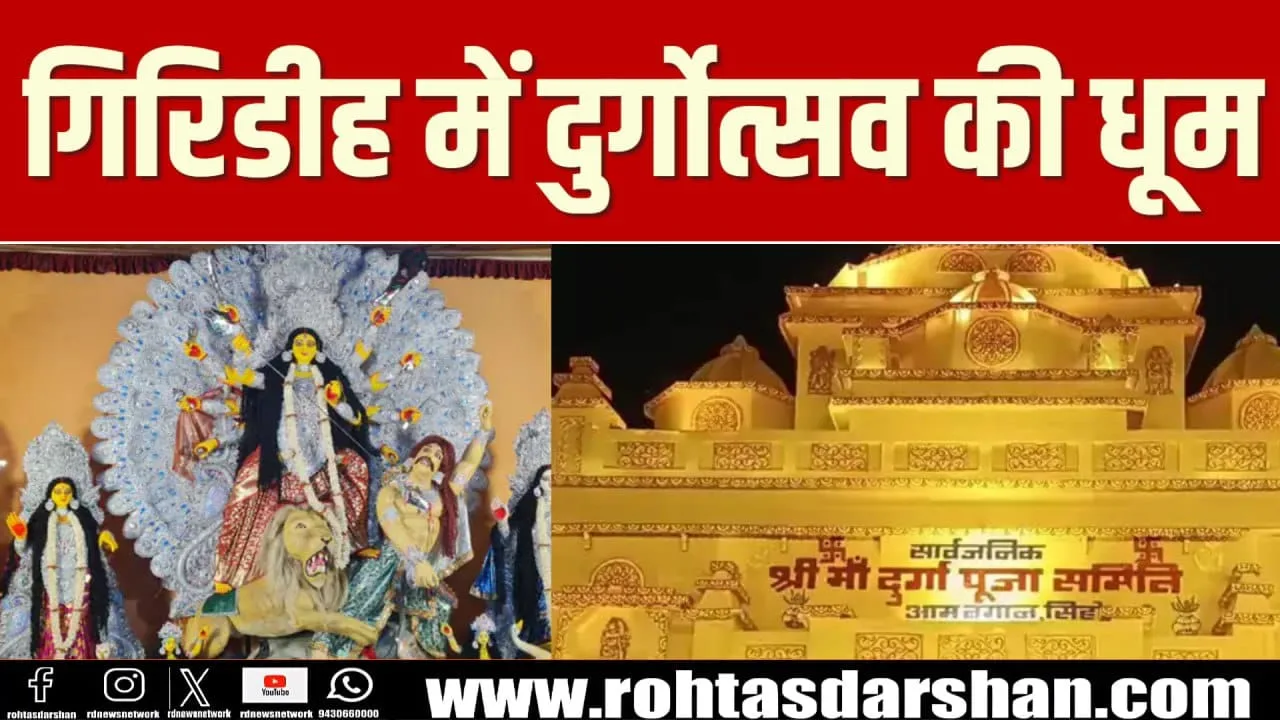 Giridih में दुर्गोत्सव की धूम, Paparwatand समिति का 100 फीट ऊंचा पंडाल बना आकर्षण